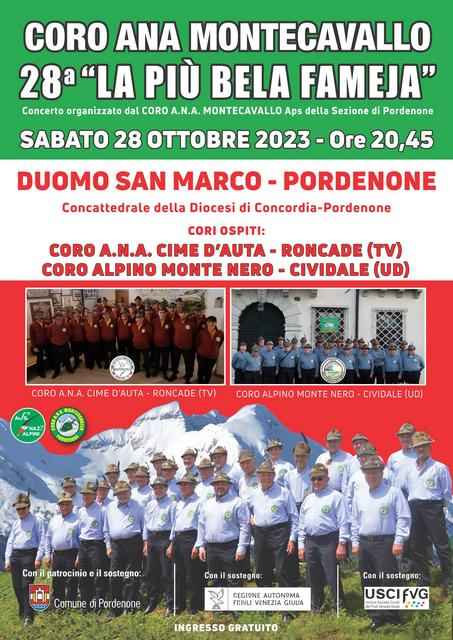 Sabato 28 ottobre 2023 il canto popolare e alpino sarà protagonista a Pordenone. Il coro ANA Montecavallo organizza la 28esima edizione de “La più bela fameja”, rassegna tradizionale che si tiene ogni autunno.